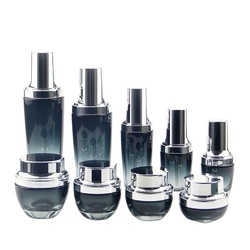Botella vacía de crema para el cuidado de la piel, Spray de vidrio negro degradado y frascos de vidrio con tapa de plata