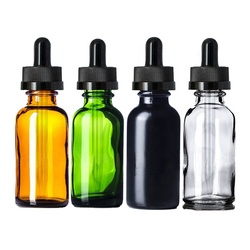 Botella con gotero de vidrio para aceite esencial, botella de vidrio transparente, color negro, ámbar y azul mate, forma redonda, clásica, Boston, 1 onza