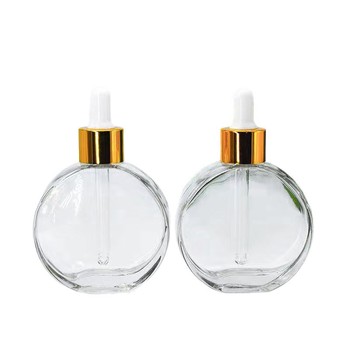 30ml 60ml 플랫 라운드 유리 스포이드 병 화장품 에센스 로션 골드 드로퍼 병
